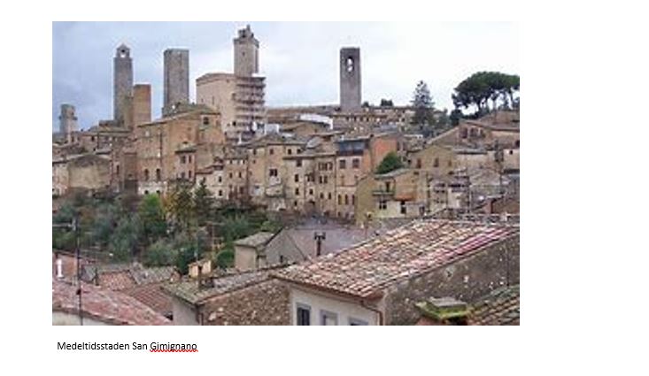Efter frukost når vi på bara några minuter den historiska staden San Gimignano, där det känns som om tiden stått stilla sedan 1300-talet. Vi strosar runt i den unika miljön, äter lunch på egen hand och kanske provar stadens berömda "världsmästarglass". På eftermiddagen återvänder vi till Terre Rosse och besöker granngården San Donato för vinprovning. Dagen avslutas med gemensam middag på hotellet.